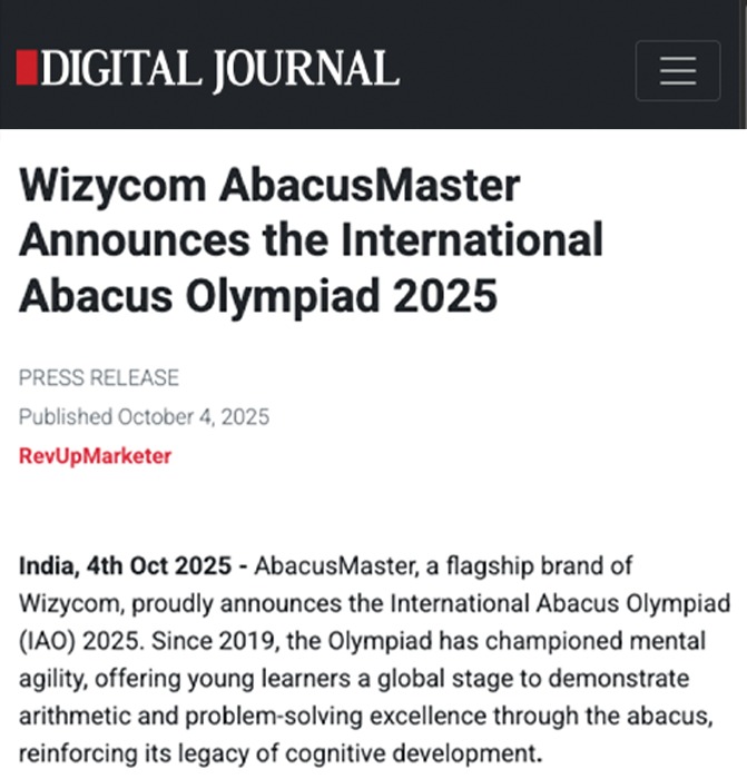 Digital Journal Highlights Wizycom AbacusMaster’s Upcoming International Abacus Olympiad 2025.